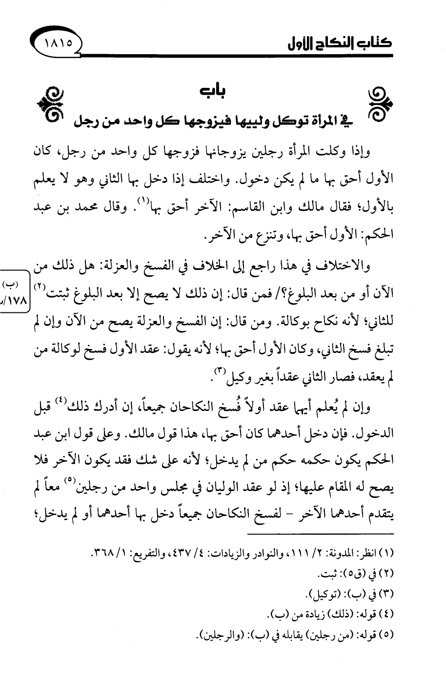 (¬1) انظر: المدونة: 2/ 111، والنوادر والزيادات: 4/ 437، والتفريع: 1/ 368.