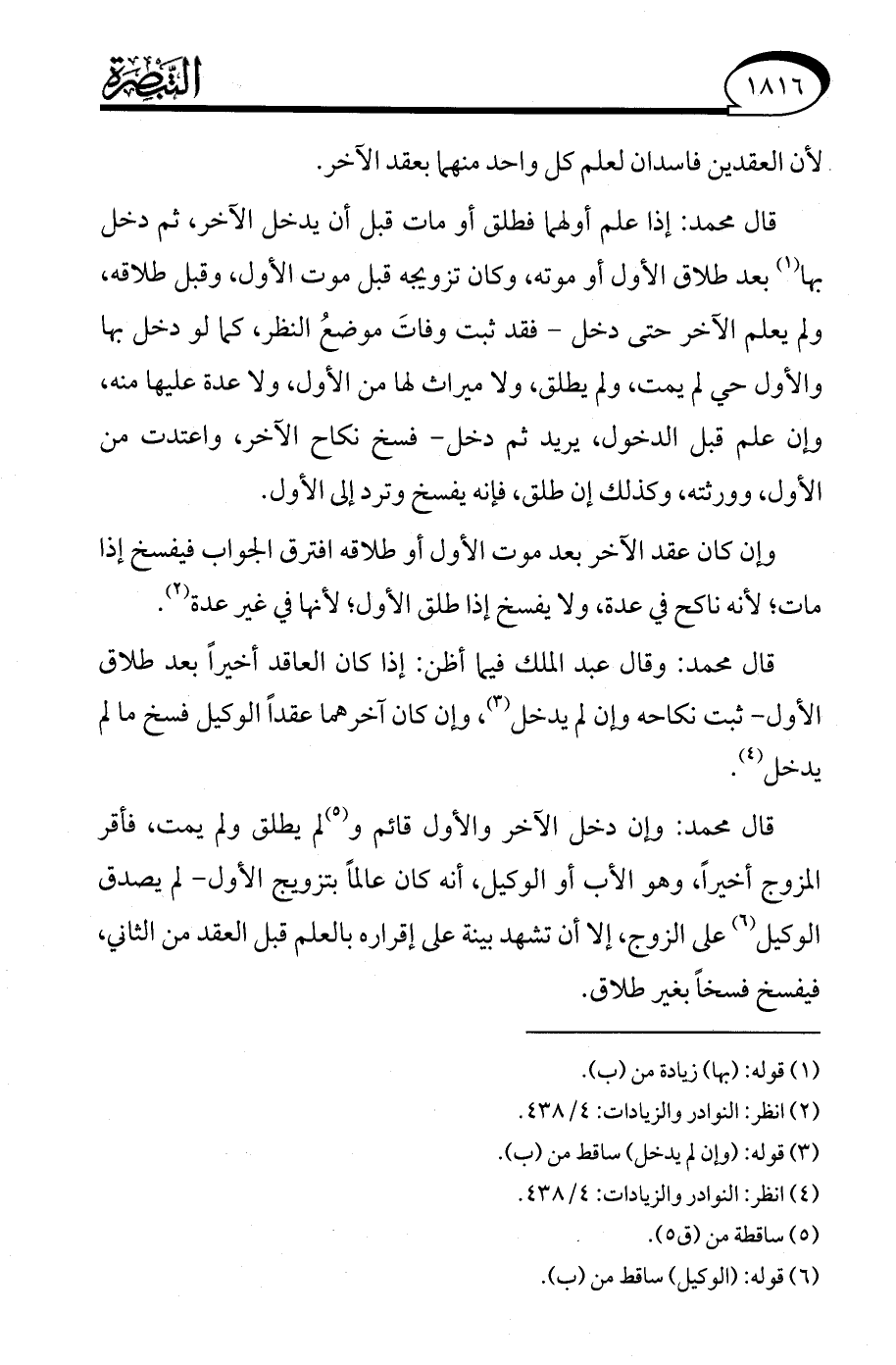 (¬2) انظر: النوادر والزيادات: 4/ 438.