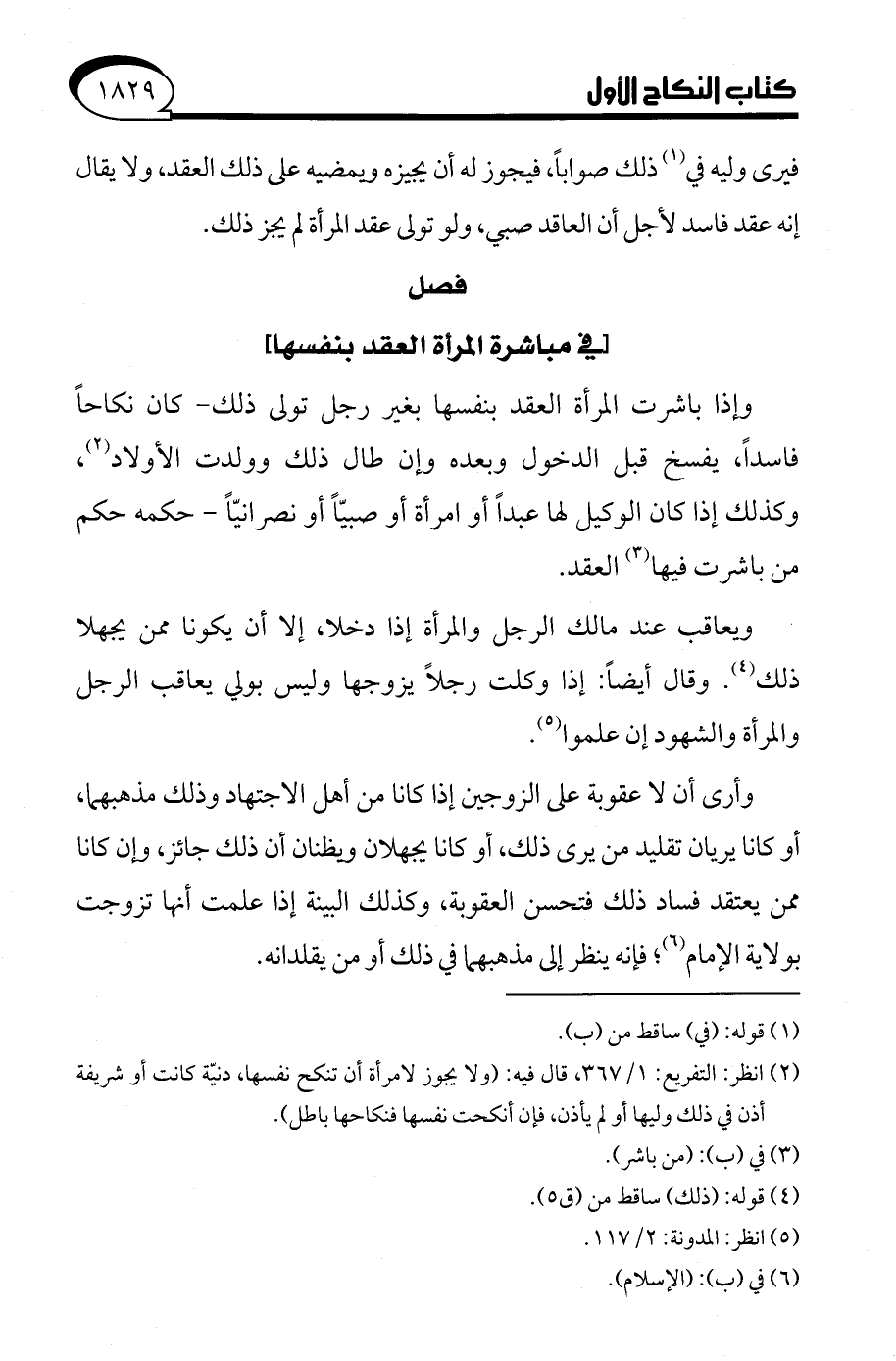 (¬2) انظر: التفريع: 1/ 367، قال فيه: (ولا يجوز لامرأة أن تنكح نفسها، دنيّة كانت أو شريفة أذن في ذلك وليها أو لم يأذن، فإن أنكحت نفسها فنكاحها باطل).