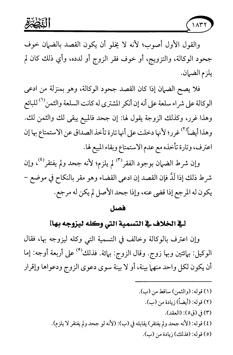 والقول الأول أصوب؛ لأنه لا يخلو أن يكون القصد بالضمان خوف جحود الوكالة، والتزويج، أو خوف فقر الزوج أو لدده، وأي ذلك كان لم يلزم الضمان.