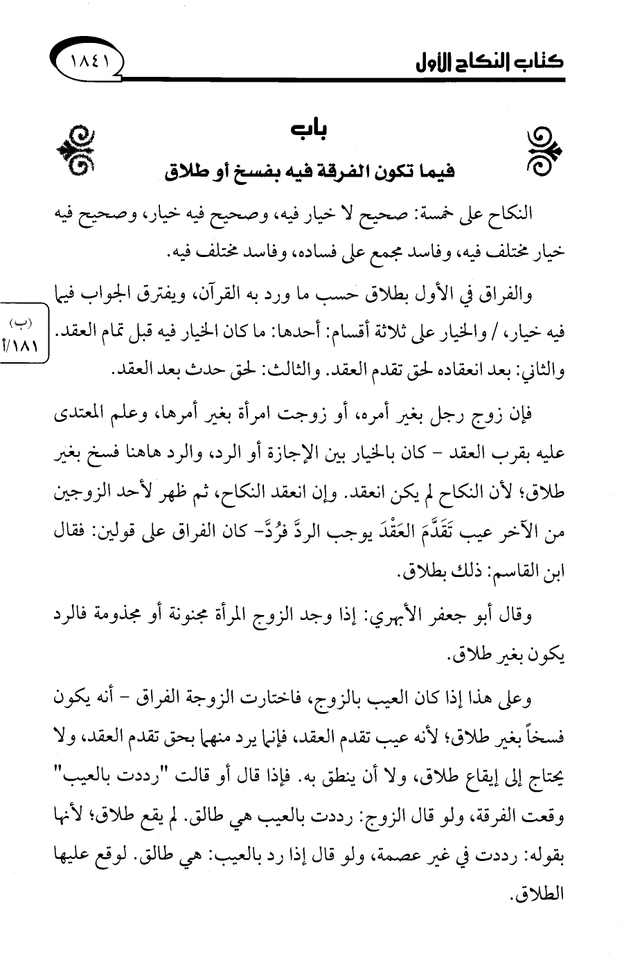 باب فيما تكون الفرقة فيه بفسخ أو طلاق
