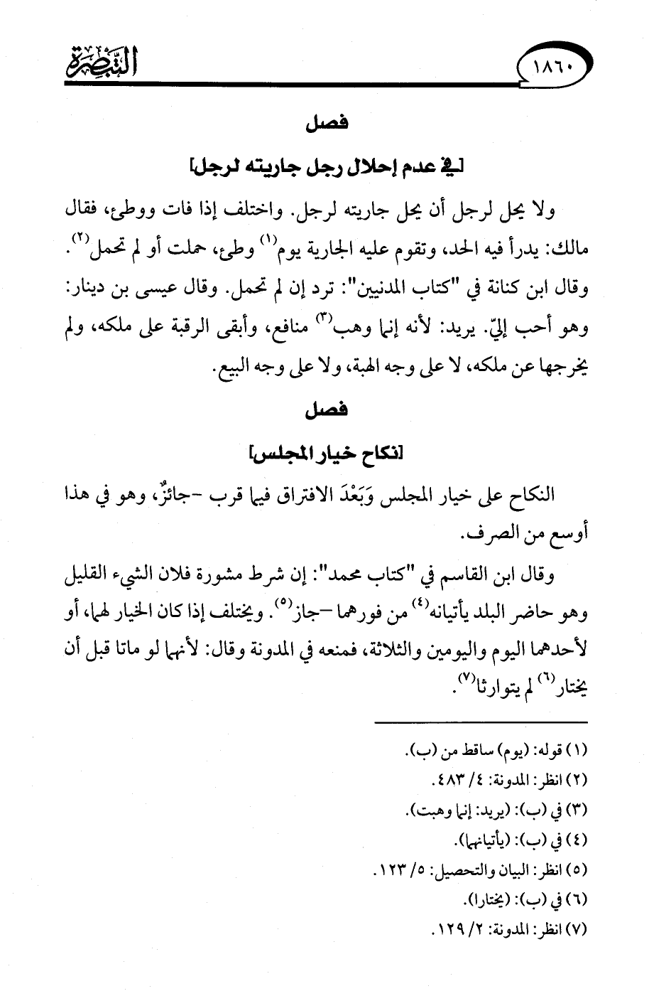 (¬5) انظر: البيان والتحصيل: 5/ 123.