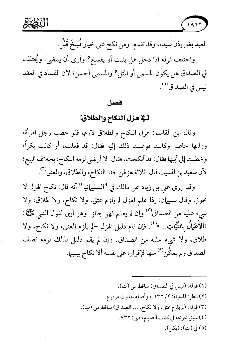 وقد روى علي بن زياد عن مالك في "السليمانية" أنه قال: نكاح الهزل لا يجوز. وقال سليمان: إذا علم الهزل لم يلزم عتق، ولا نكاح، ولا طلاق، ولا شيء عليه من الصداق (¬3) وإن لم يعلم فهو جائز. وهو أبين لقول النبي - صلى الله عليه وسلم -: "الأَعْمَالُ بِالنِّيَّاتِ. . ." (¬4). فإن قام دليل الهزل - لم يلزم العتق، ولا نكاح، ولا طلاق، ولا شيء عليه من الصداق. وإن لم يقم دليل لذلك لزمه نصف الصداق ولم يمكَّن (¬5) منها لإقراره على نفسه ألا نكاح بينهما.