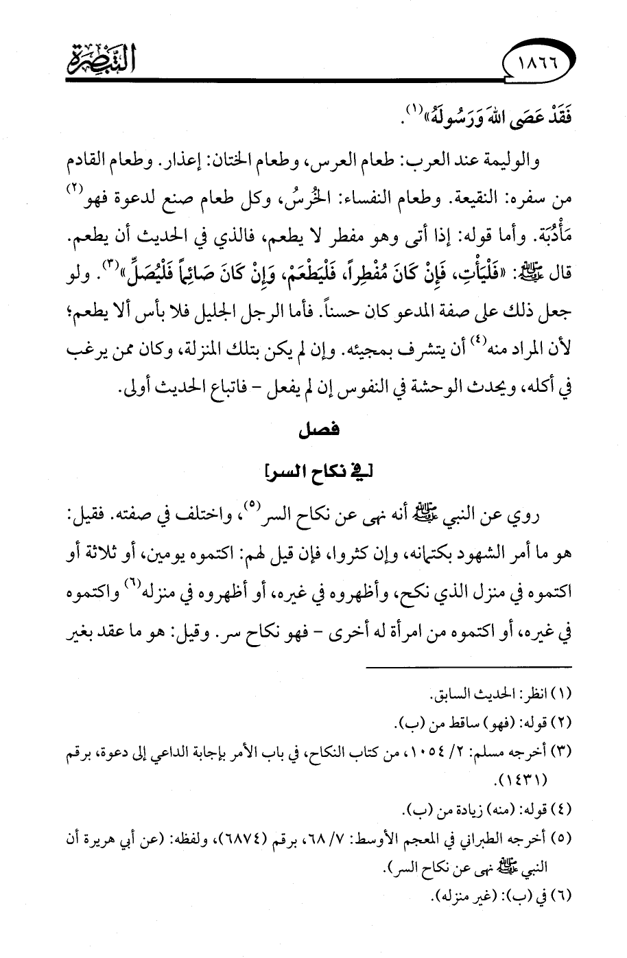 (¬5) أخرجه الطبراني في المعجم الأوسط: 7/ 68، برقم (6874)، ولفظه: (عن أبي هريرة أن النبي - صلى الله عليه وسلم - نهى عن نكاح السر).