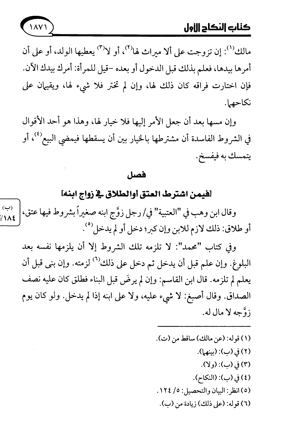 (¬5) انظر: البيان والتحصيل: 5/ 124.