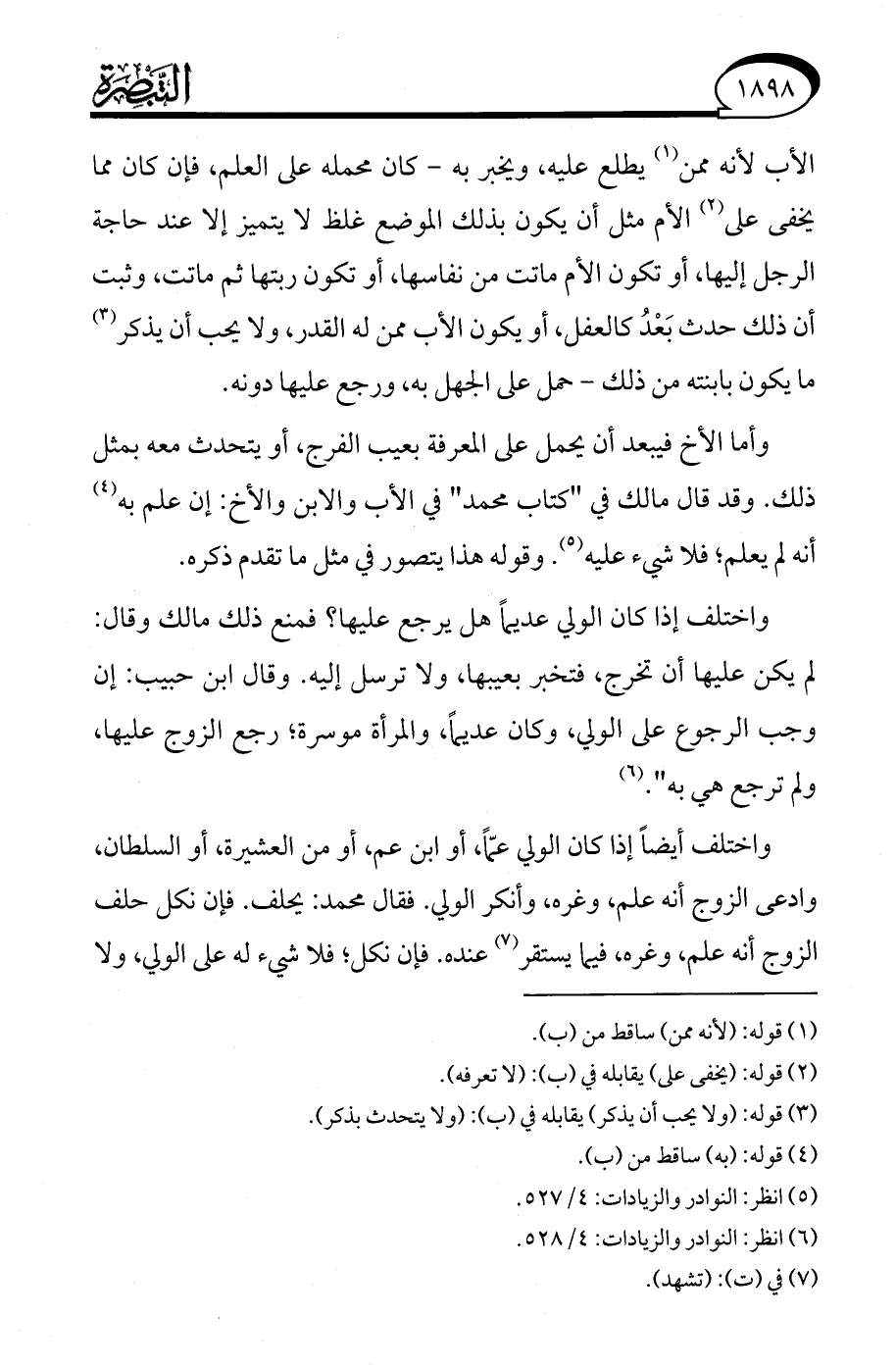 (¬6) انظر: النوادر والزيادات: 4/ 528.