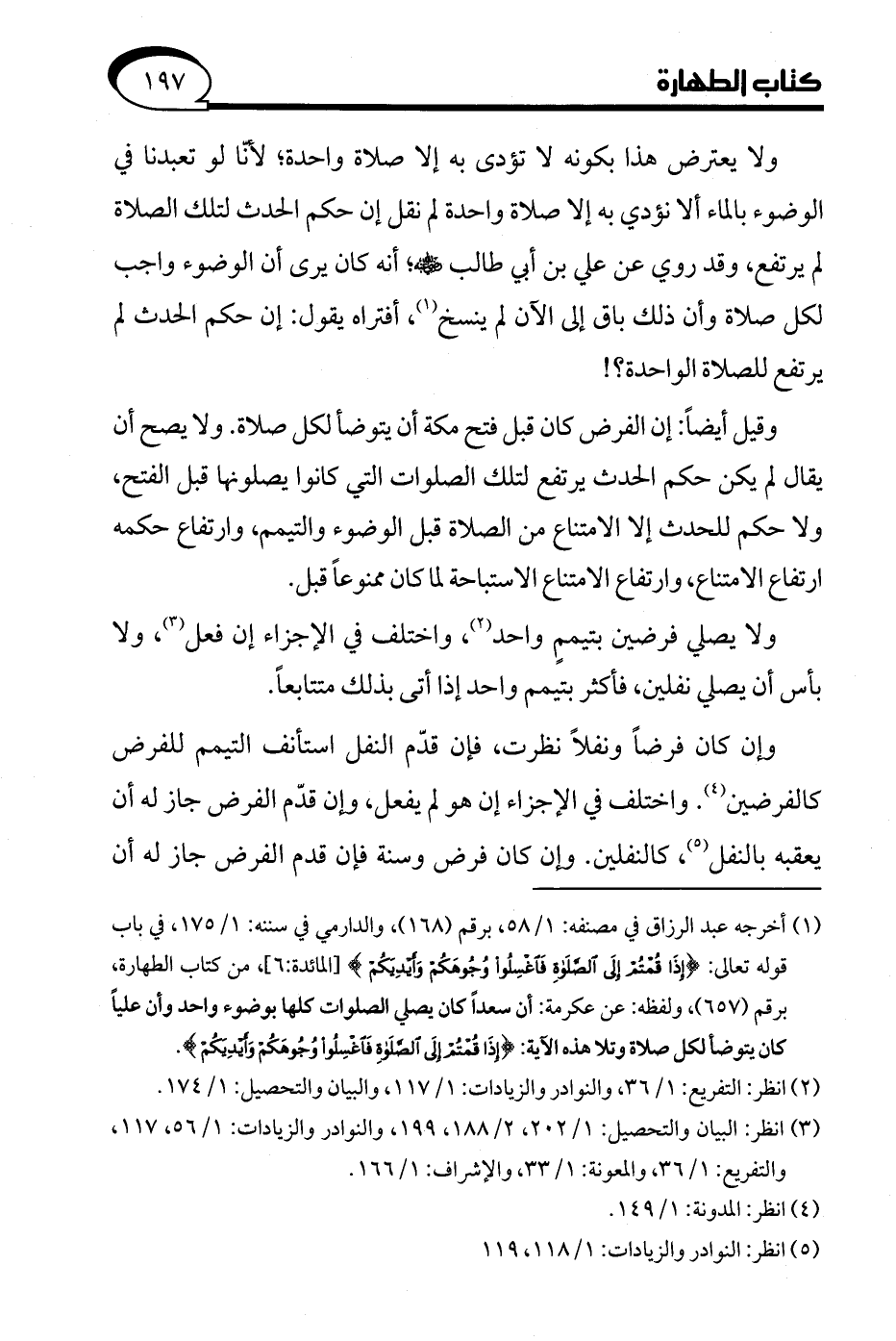 (¬3) انظر: البيان والتحصيل: 1/ 202، 2/ 188، 199، والنوادر والزيادات: 1/ 56، 117، والتفريع: 1/ 36، والمعونة: 1/ 33، والإشراف: 1/ 166.