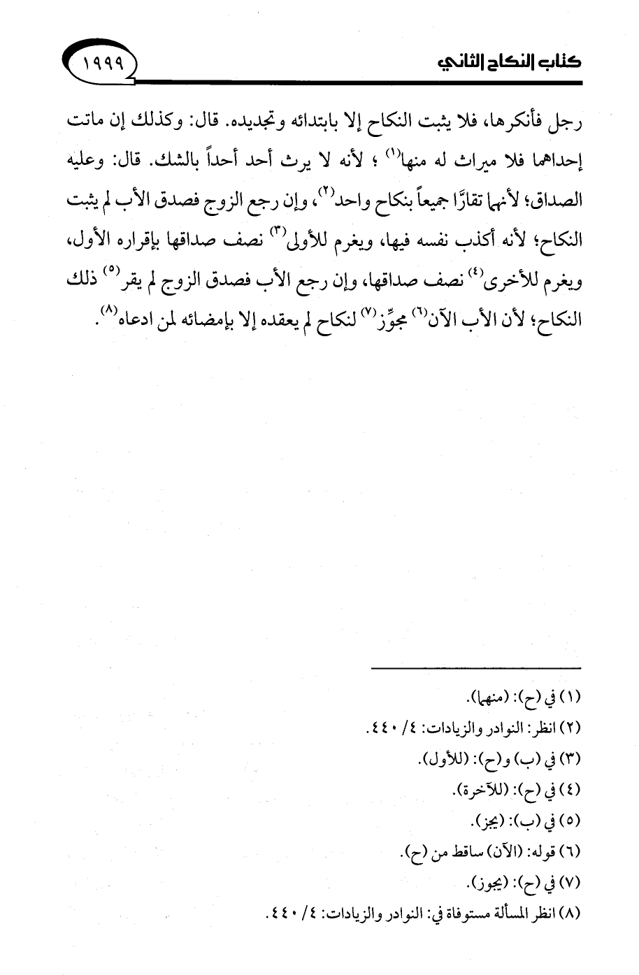 (¬8) انظر المسألة مستوفاة في: النوادر والزيادات: 4/ 440.