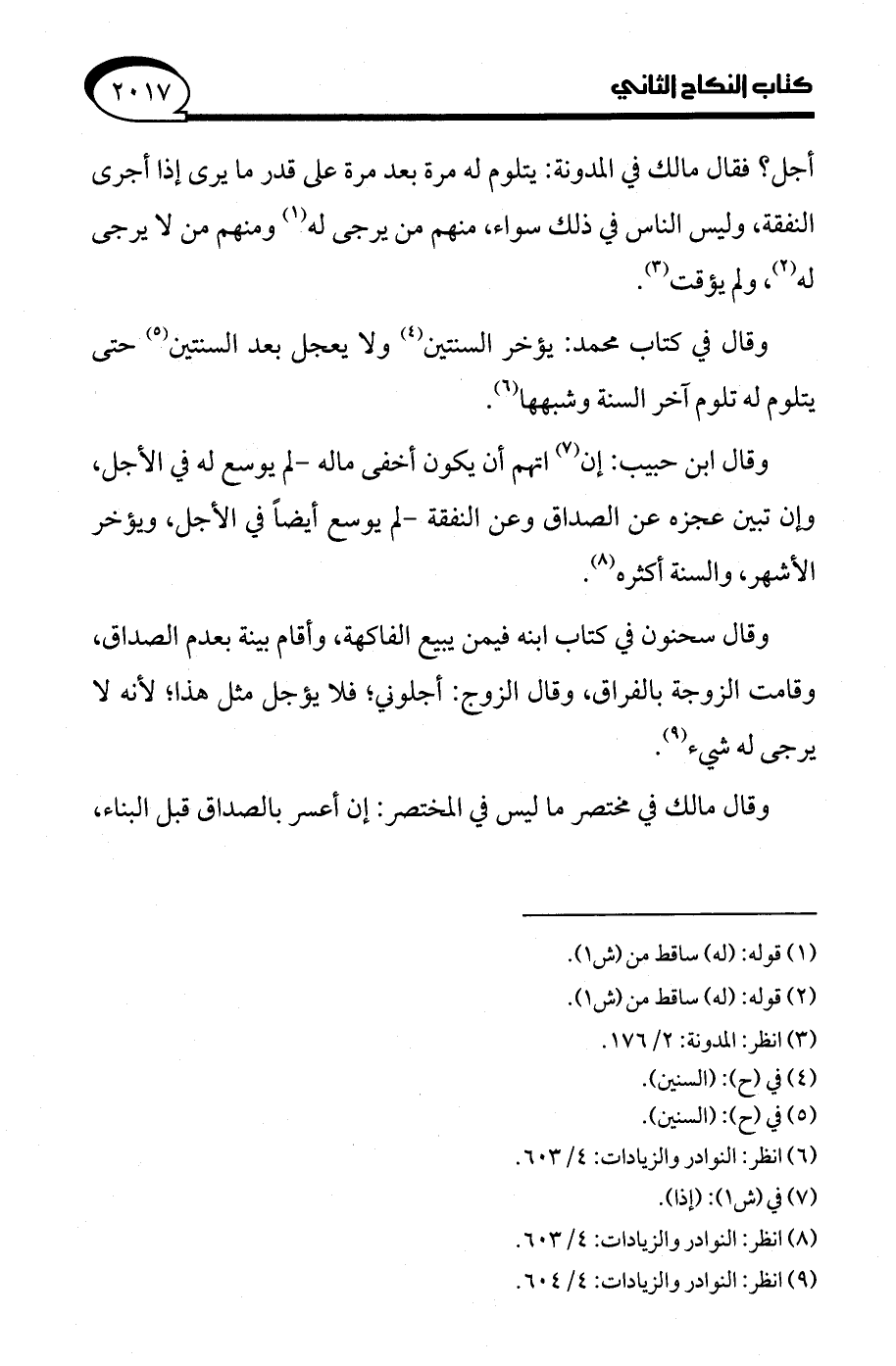 (¬9) انظر: النوادر والزيادات: 4/ 604.