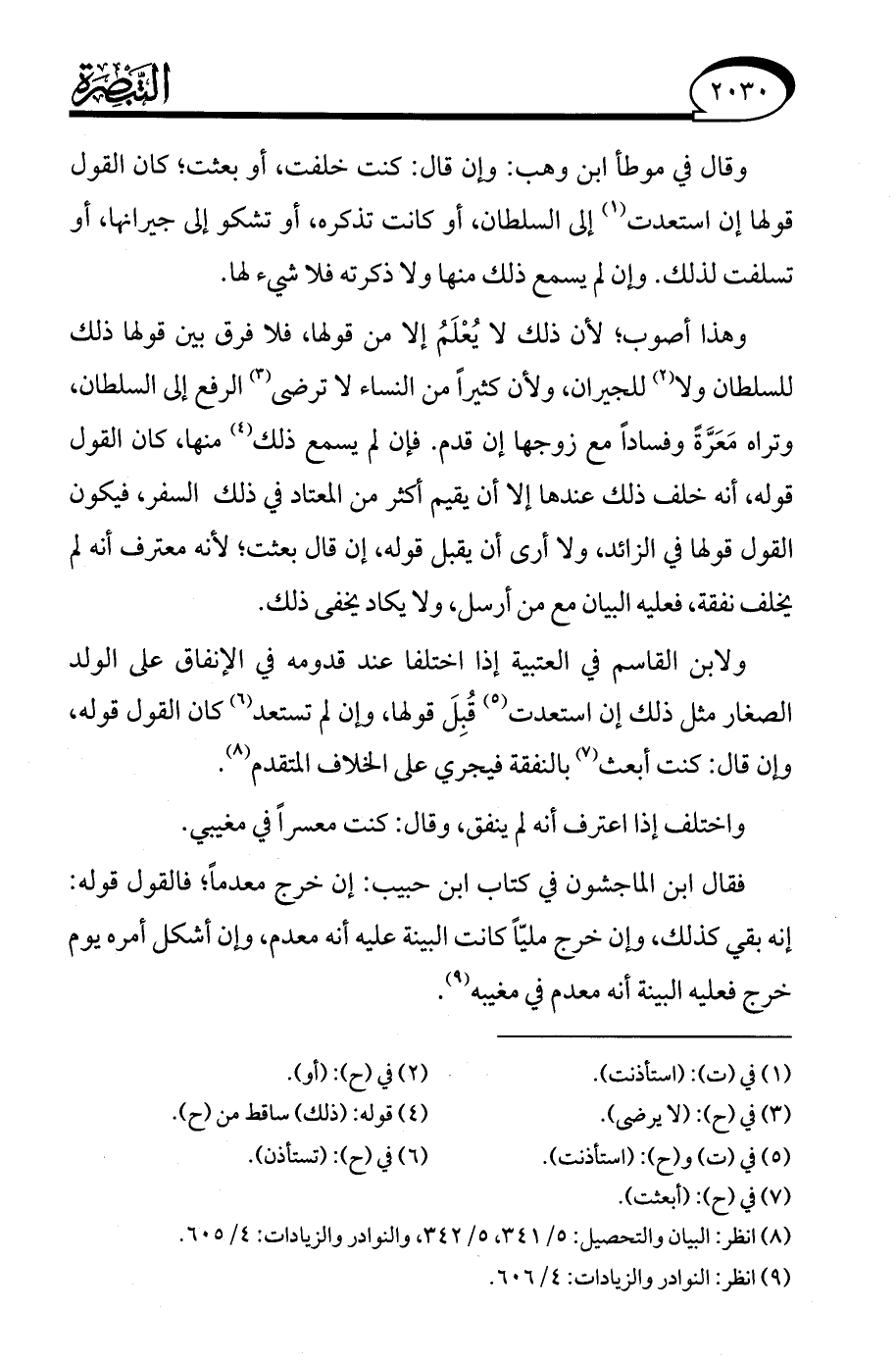 (¬8) انظر: البيان والتحصيل: 5/ 341، 5/ 342، والنوادر والزيادات: 4/ 605.
