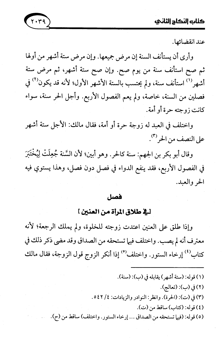 وقال أبو بكر بن الجهم: سنة كالحر. وهو أبين؛ لأن السَّنة جُعِلَتْ لِيُخْتبَرَ في الفصول الأربع، فقد ينفع الدواء في فصل دون فصل، وهذا يستوي فيه الحر والعبد.