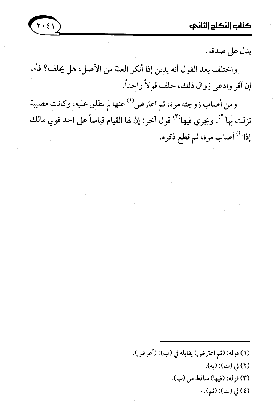 واختلف بعد القول أنه يدين إذا أنكر العنة من الأصل، هل يحلف؟ فأما إن أقر وادعى زوال ذلك، حلف قولًا واحدًا.