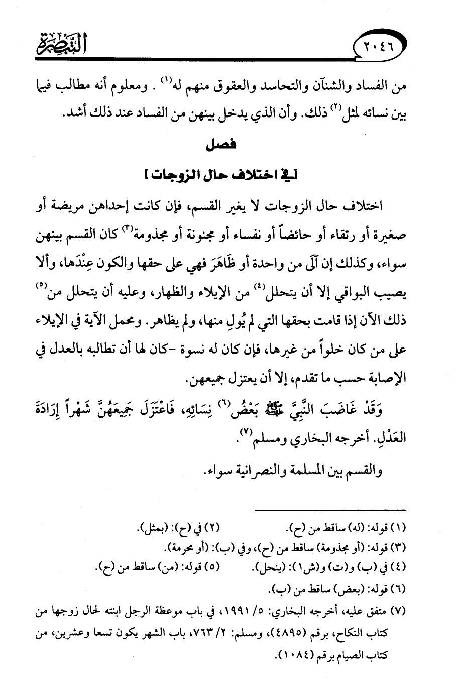 فصل [في اختلاف حال الزوجات]