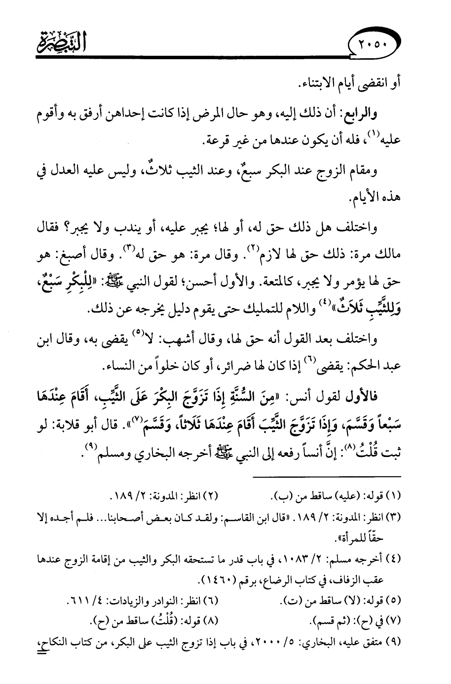 (¬3) انظر: المدونة: 2/ 189. "قال ابن القاسم: ولقد كان بعض أصحابنا. . . فلم أجده إلا حقًّا للمرأة".