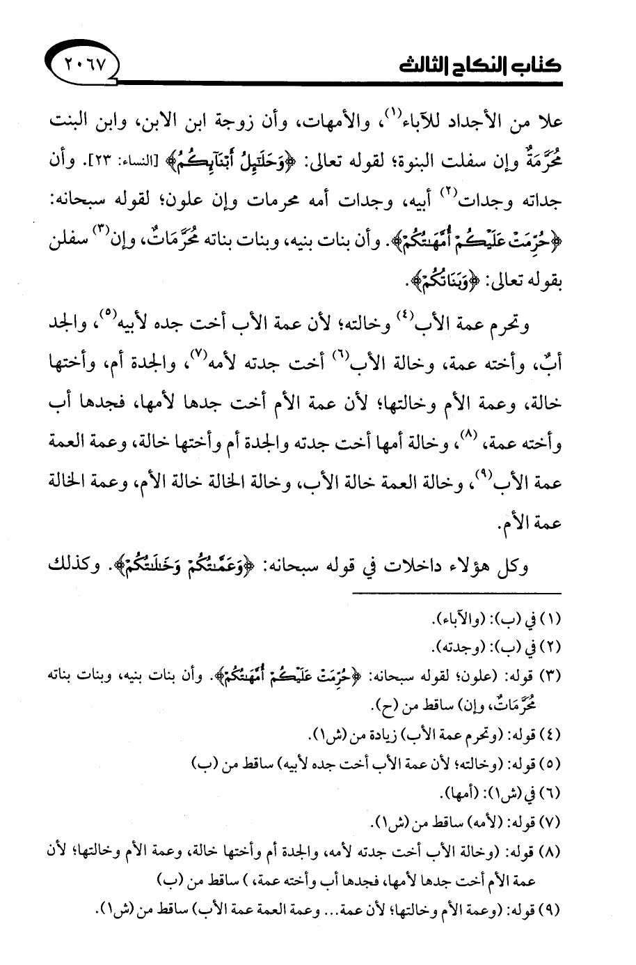 (¬3) قوله: (علون؛ لقوله سبحانه: {حُرِّمَتْ عَلَيْكُمْ أُمَّهَاتُكُمْ}. وأن بنات بنيه، وبنات بناته مُحَرَّمَاتٌ، وإن) ساقط من (ح).