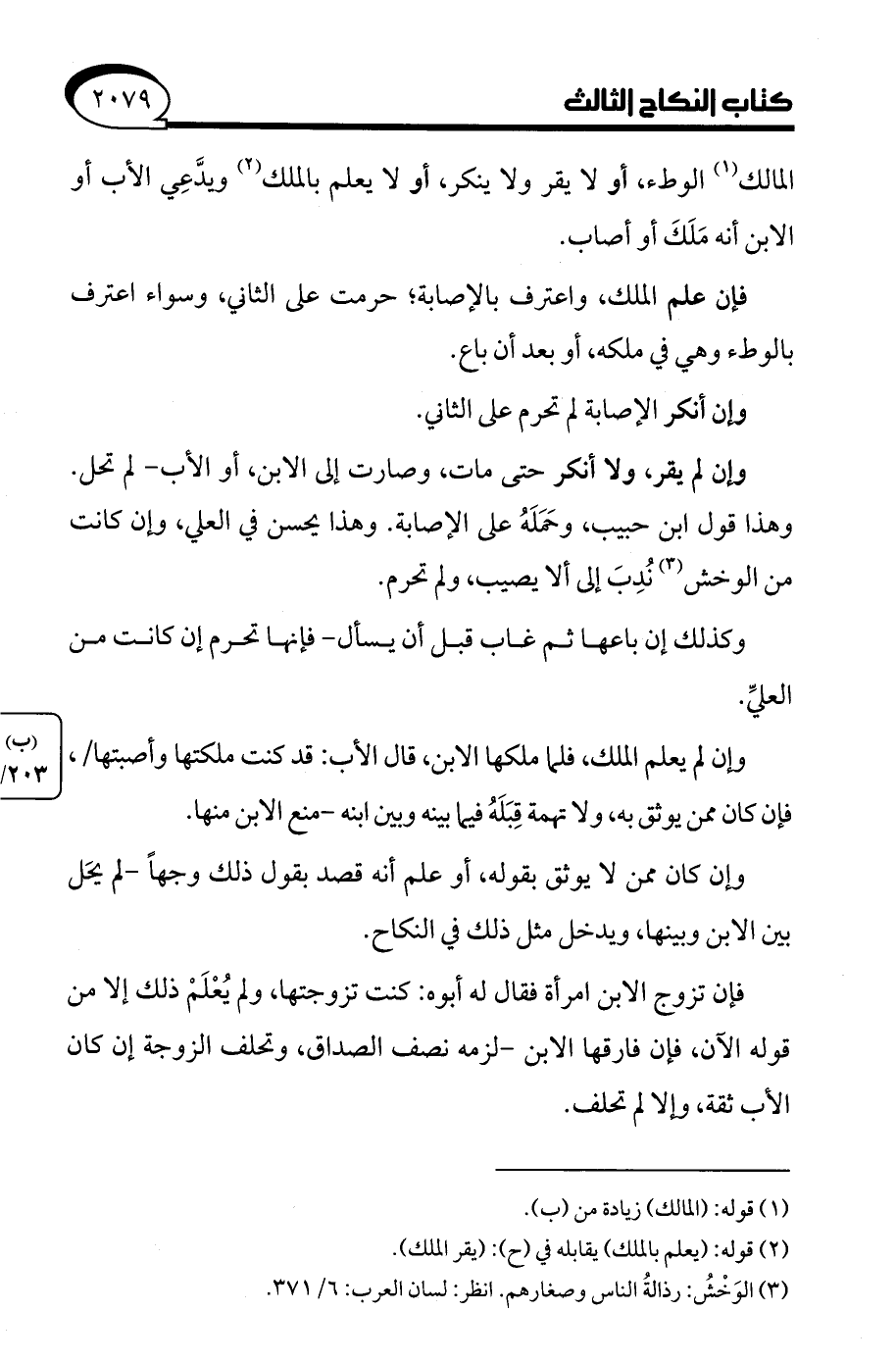 وإن لم يقر، ولا أنكر حتى مات، وصارت إلى الابن، أو الأب- لم تحل. وهذا قول ابن حبيب، وحَمَلَهُ على الإصابة. وهذا يحسن في العلي، وإن كانت من الوخش (¬3) نُدِبَ إلى ألا يصيب، ولم تحرم.