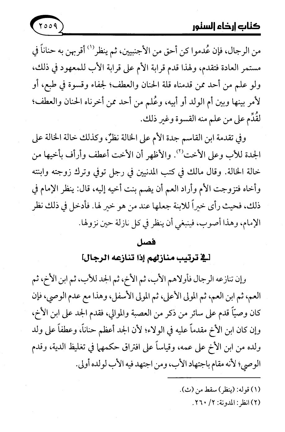 من الرجال، فإن عُدموا كن أحق من الأجنبيين، ثم ينظر (¬1) أقربهن به حنانًا في مستمر العادة فتقدم، ولهذا قدم قرابة الأم على قرابة الأب للمعهود في ذلك، ولو علم من أحد ممن قدمناه قلة الحنان والعطف، لجفاء وقسوة في طبع، أو لأمر بينها وبن أم الولد أو أبيه، وعُلم من أحد ممن أخرناه الحنان والعطف؛ لقُدِّم على من علم منه القسوة وغير ذلك.