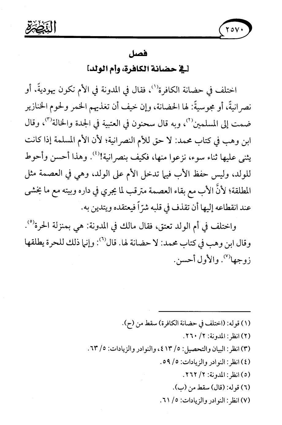 (¬3) انظر: البيان والتحصيل: 5/ 413، والنوادر والزيادات: 5/ 63.