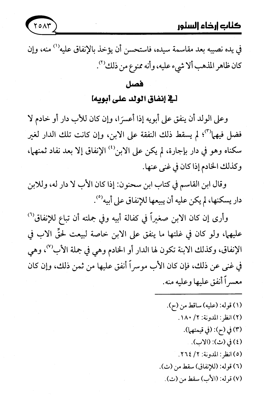 (¬5) انظر: المدونة: 2/ 264.