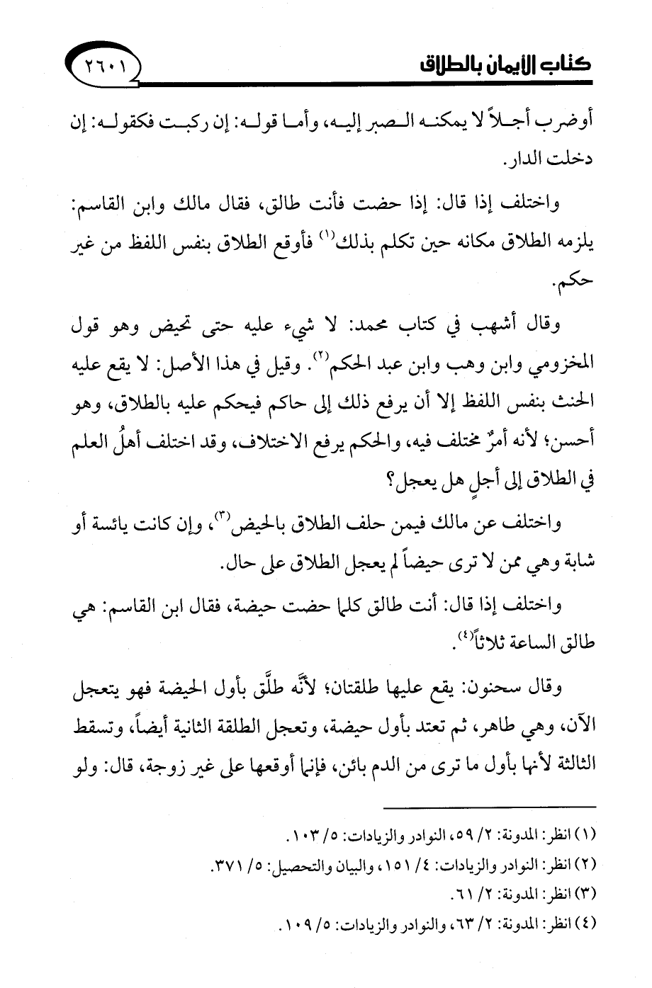 (¬2) انظر: النوادر والزيادات: 4/ 151، والبيان والتحصيل: 5/ 371.