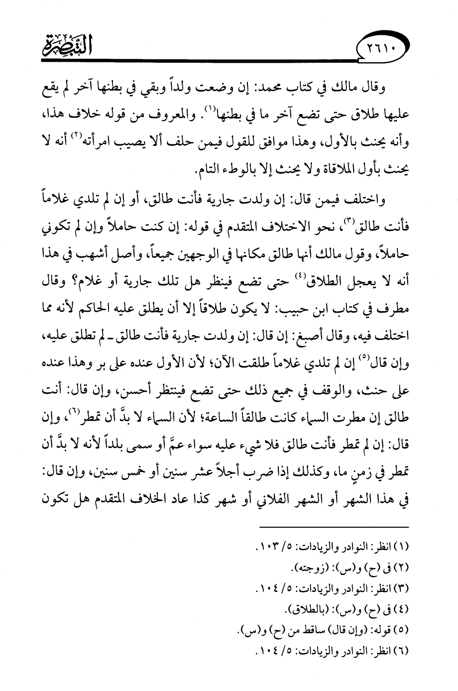 (¬6) انظر: النوادر والزيادات: 5/ 104.