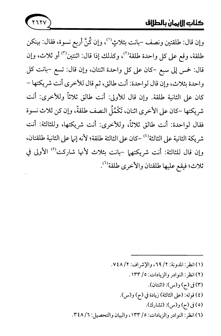 (¬6) انظر: النوادر والزيادات: 5/ 133، والبيان والتحصيل: 6/ 348.
