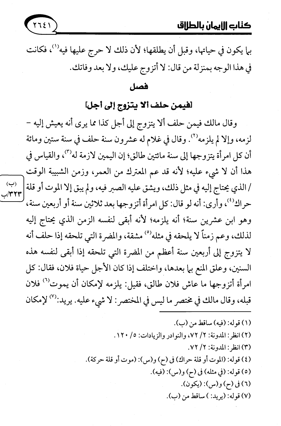 (¬2) انظر: المدونة: 2/ 72، والنوادر والزيادات: 5/ 120.