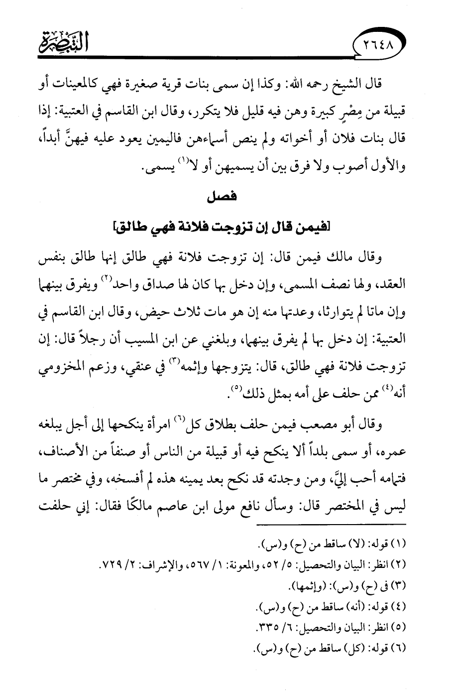 (¬5) انظر: البيان والتحصيل: 6/ 335.