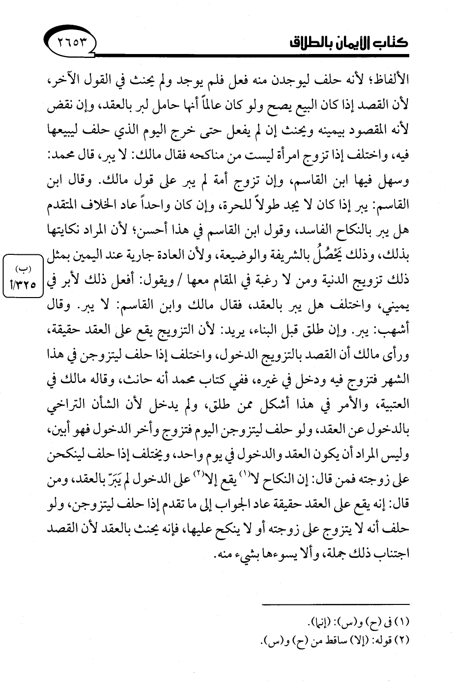 الألفاظ؛ لأنه حلف ليوجدن منه فعل فلم يوجد ولم يحنث في القول الآخر، لأن القصد إذا كان البيع يصح ولو كان عالمًا أنها حامل لبر بالعقد، وإن نقض لأنه المقصود بيمينه ويحنث إن لم يفعل حتى خرج اليوم الذي حلف ليبيعها فيه، واختلف إذا تزوج امرأة ليست من مناكحه فقال مالك: لا يبر، قال محمد: وسهل فيها ابن القاسم، وإن تزوج أمة لم يبر على قول مالك. وقال ابن القاسم: يبر إذا كان لا يجد طولًا للحرة، وإن كان واحدًا عاد الخلاف المتقدم هل يبر بالنكاح الفاسد، وقول ابن القاسم في هذا أحسن؛ لأن المراد نكايتها بذلك، وذلك يَحْصُلُ بالشريفة والوضيعة، ولأن العادة جارية عند اليمين بمثل ذلك تزويج الدنية ومن لا رغبة في المقام معها ويقول: أفعل ذلك لأبر في يميني، واختلف هل يبر بالعقد، فقال مالك وابن القاسم: لا يبر. وقال أشهب: يبر. وإن طلق قبل البناء، يريد: لأن التزويج يقع على العقد حقيقة، ورأى مالك أن القصد بالتزويج الدخول، واختلف إذا حلف ليتزوجن في هذا الشهر فتزوج فيه ودخل في غيره، ففي كتاب محمد أنه حانث، وقاله مالك في العتبية، والأمر في هذا أشكل ممن طلق، ولم يدخل لأن الشأن التراخي بالدخول عن العقد، ولو حلف ليتزوجن اليوم فتزوج وأخر الدخول فهو أبين، وليس المراد أن يكون العقد والدخول في يوم واحد، ويختلف إذا حلف لينكحن على زوجته فمن قال: إن النكاح لا (¬1) يقع إلا (¬2) على الدخول لم يَبَرّ بالعقد، ومن قال: إنه يقع على العقد حقيقة عاد الجواب إلى ما تقدم إذا حلف ليتزوجن، ولو حلف أنه لا يتزوج على زوجته أو لا ينكح عليها، فإنه يحنث بالعقد لأن القصد اجتناب ذلك جملة، وألا يسوءها بشيء منه.