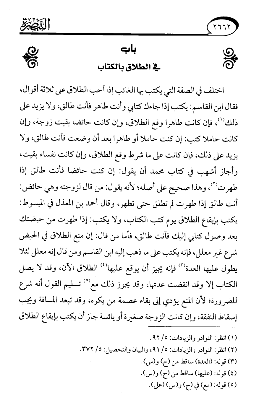 (¬2) انظر: النوادر والزيادات: 5/ 91، والبيان والتحصيل: 5/ 372.