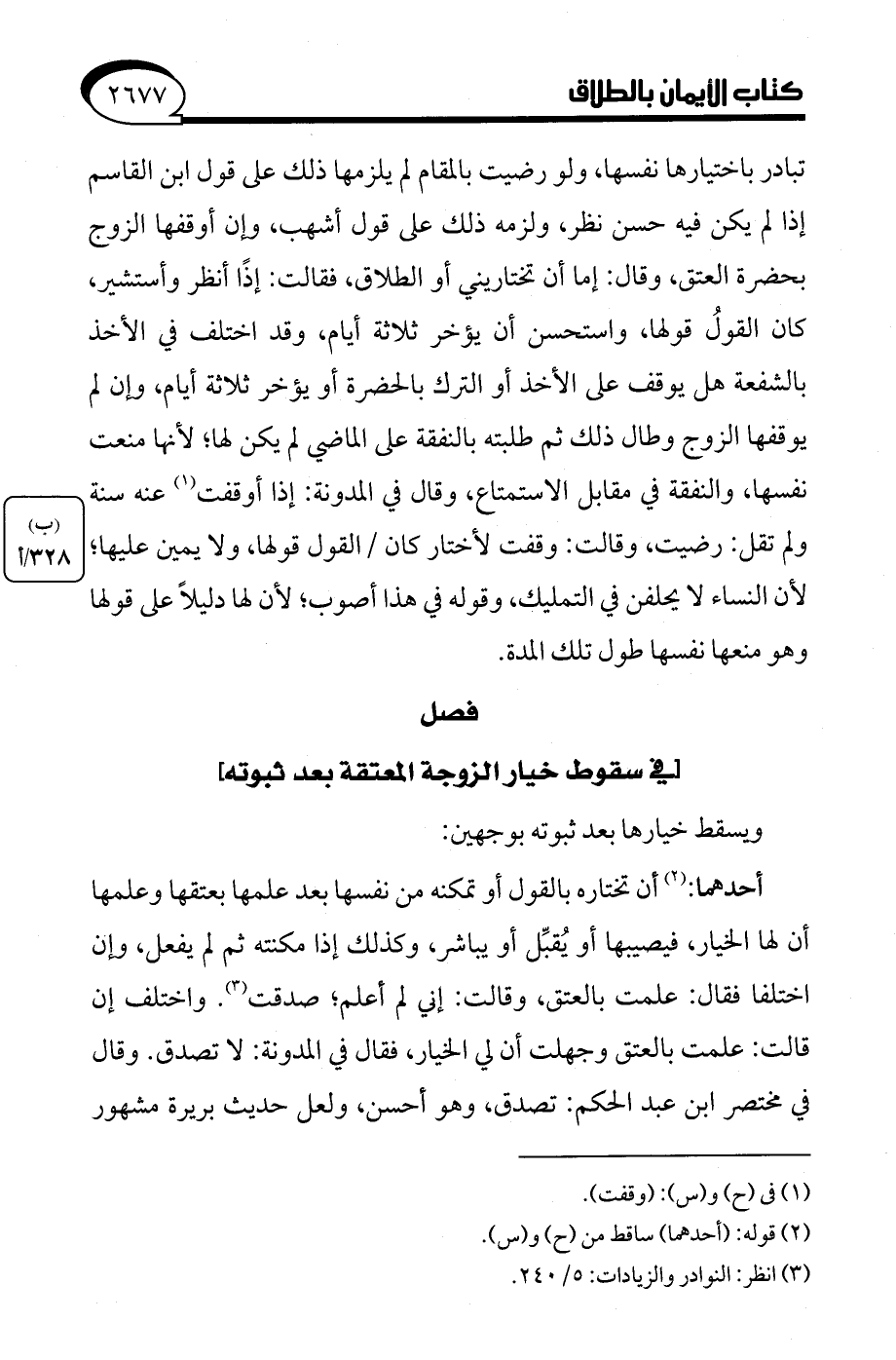 (¬3) انظر: النوادر والزيادات: 5/ 240.