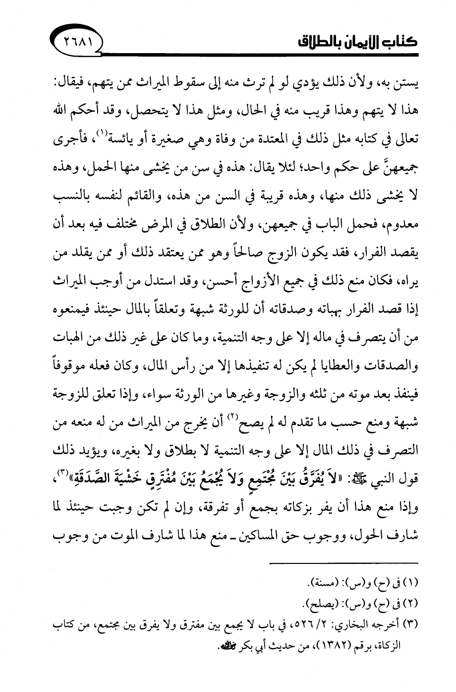 (¬3) أخرجه البخاري: 2/ 526، في باب لا يجمع بين مفترق ولا يفرق بين مجتمع، من كتاب الزكاة، برقم (1382)، من حديث أبي بكر - رضي الله عنه -.