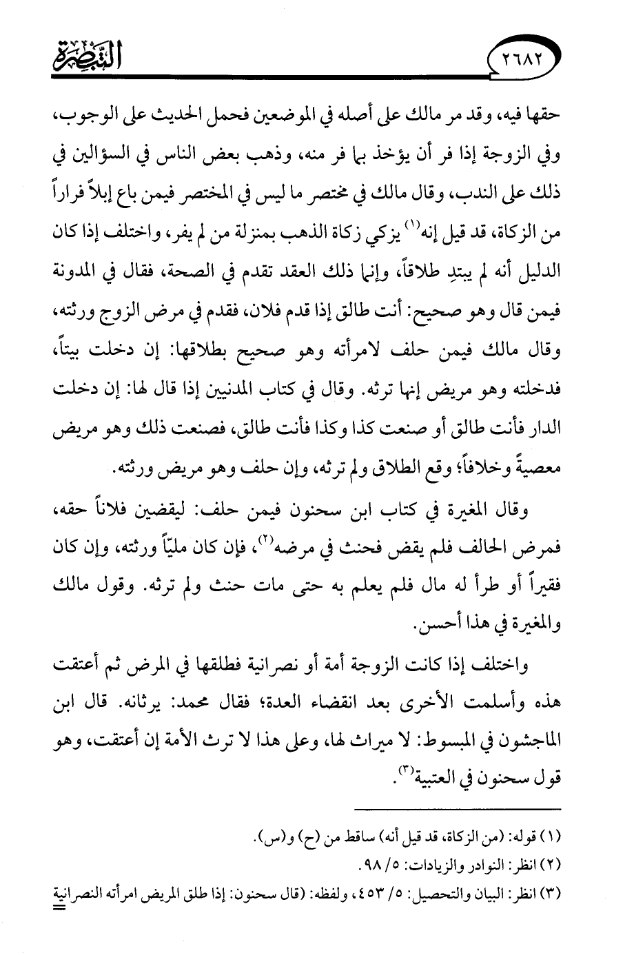 (¬3) انظر: البيان والتحصيل: 5/ 453، ولفظه: (قال سحنون: إذا طلق المريض امرأته النصرانية =