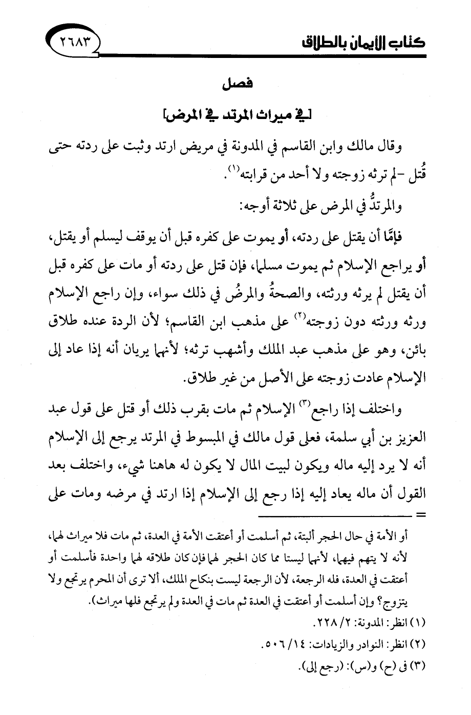 (¬2) انظر: النوادر والزيادات: 14/ 506.