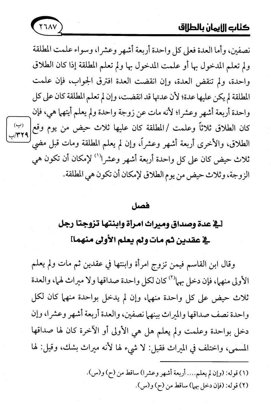 نصفين، وأما العدة فعلى كل واحدة أربعة أشهر وعشرا، وسواء علمت المطلقة ولم تعلم المدخول بها أو علمت المدخول بها ولم تعلم المطلقة إذا كان الطلاق واحدة، ولم تنقض العدة، وإن انقضت العدة افترق الجواب، فإن علمت المطلقة لم يكن عليها عدة؛ لأن عدتها قد انقضت، وإن لم تعلم المطلقة كان على كل واحدة أربعة أشهر وعشرا؛ لأنه مات عن زوجة واحدة ولم يعلم أيتهما هي، فإن كان الطلاق ثلاثًا وعلمت المطلقة كان عليها ثلاث حيض من يوم وقع الطلاق، والأخرى أربعة أشهر وعشرًا، وإن لم يعلم المطلقة ومات قبل مضي ثلاث حيض كان على كل واحدة أربعة أشهر وعشرا (¬1) لإمكان أن تكون هي الزوجة، وثلاث حيض من يوم الطلاق لإمكان أن تكون هي المطلقة.
