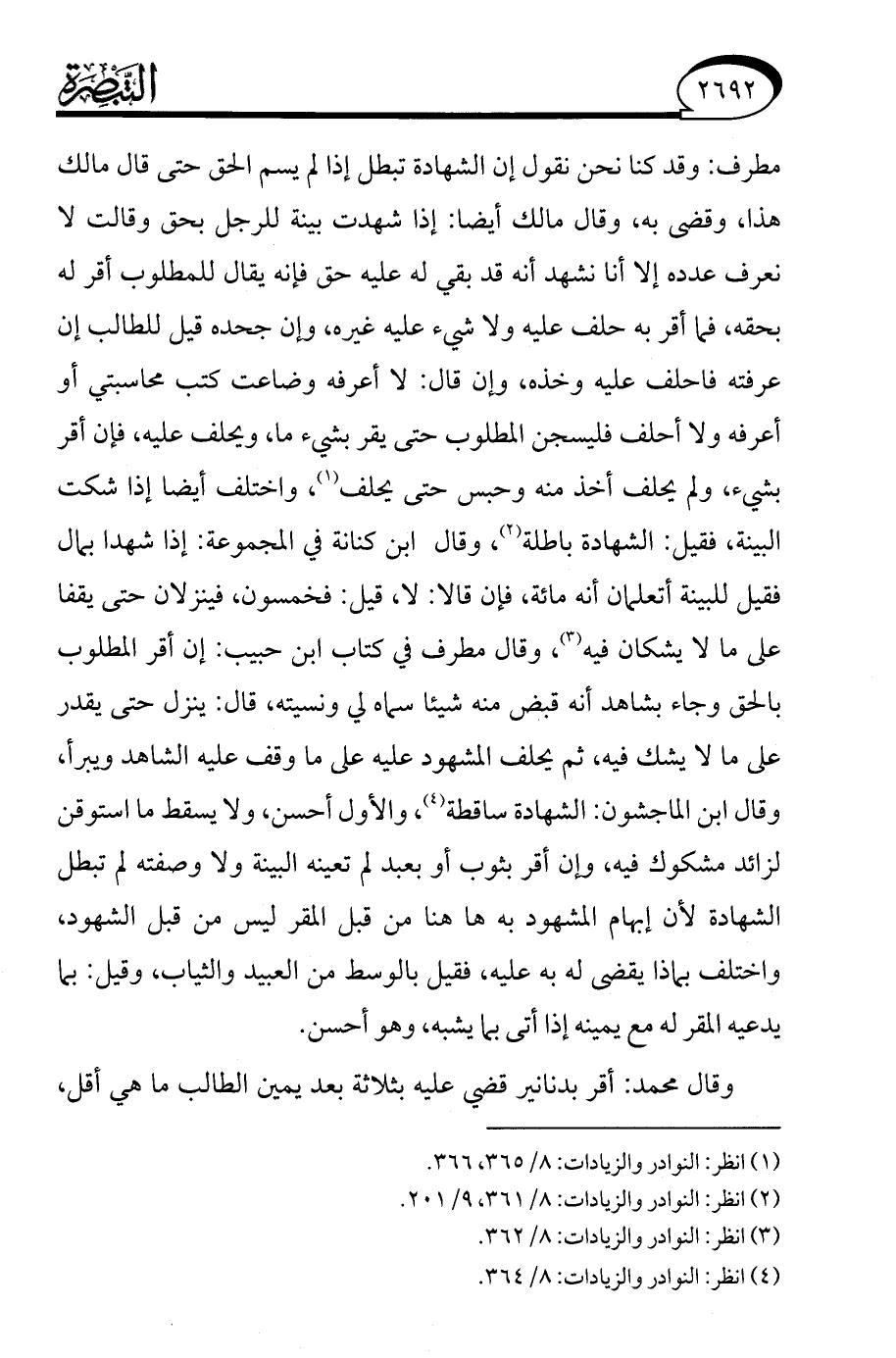 (¬2) انظر: النوادر والزيادات: 8/ 361، 9/ 201.