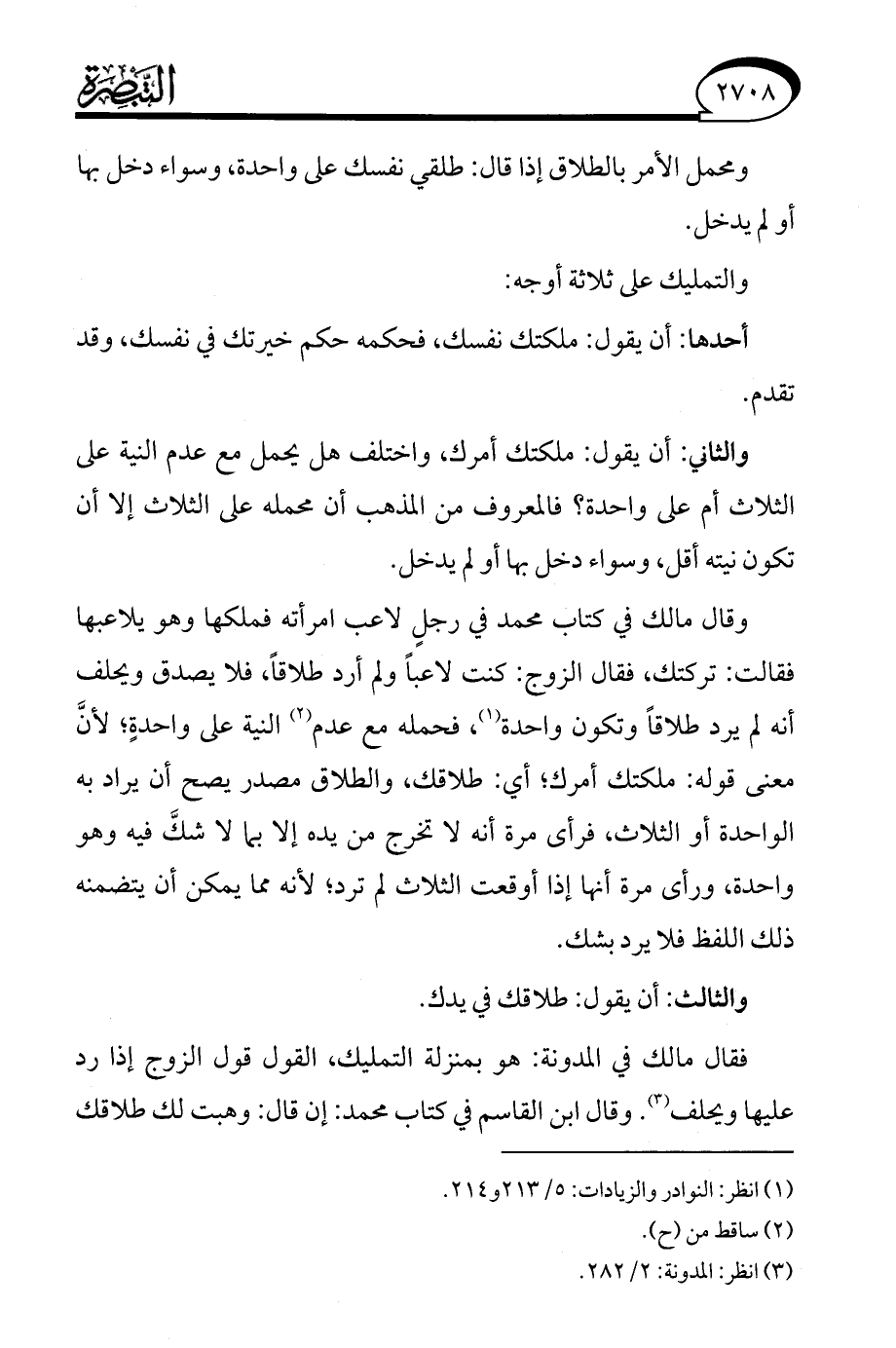 (¬1) انظر: النوادر والزيادات: 5/ 213 و 214.