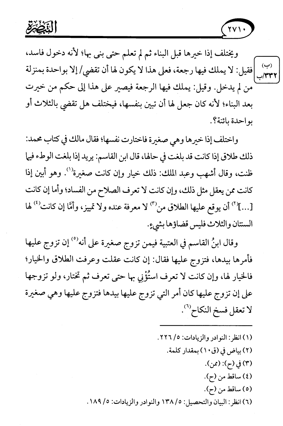 (¬6) انظر: البيان والتحصيل: 5/ 138 والنوادر والزيادات: 5/ 189.