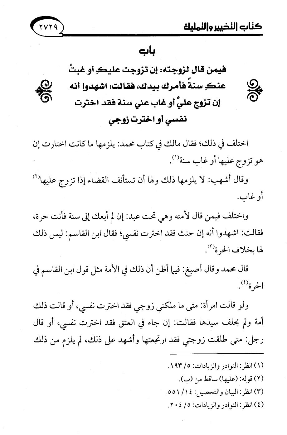 (¬4) انظر: النوادر والزيادات: 5/ 204.
