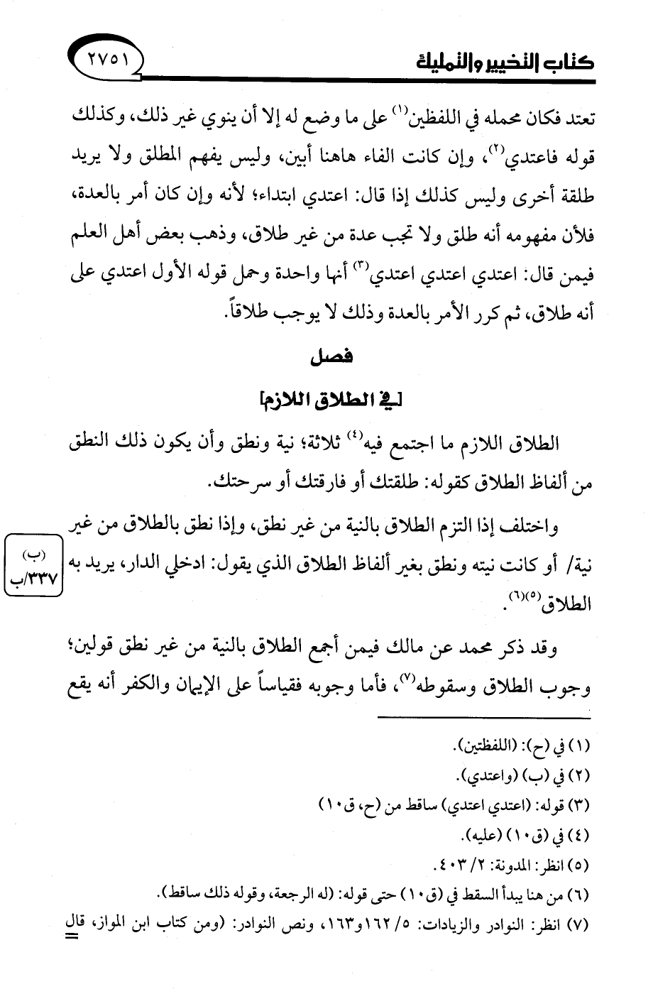(¬7) انظر: النوادر والزيادات: 5/ 162 و 163، ونص النوادر: (ومن كتاب ابن المواز، قال =
