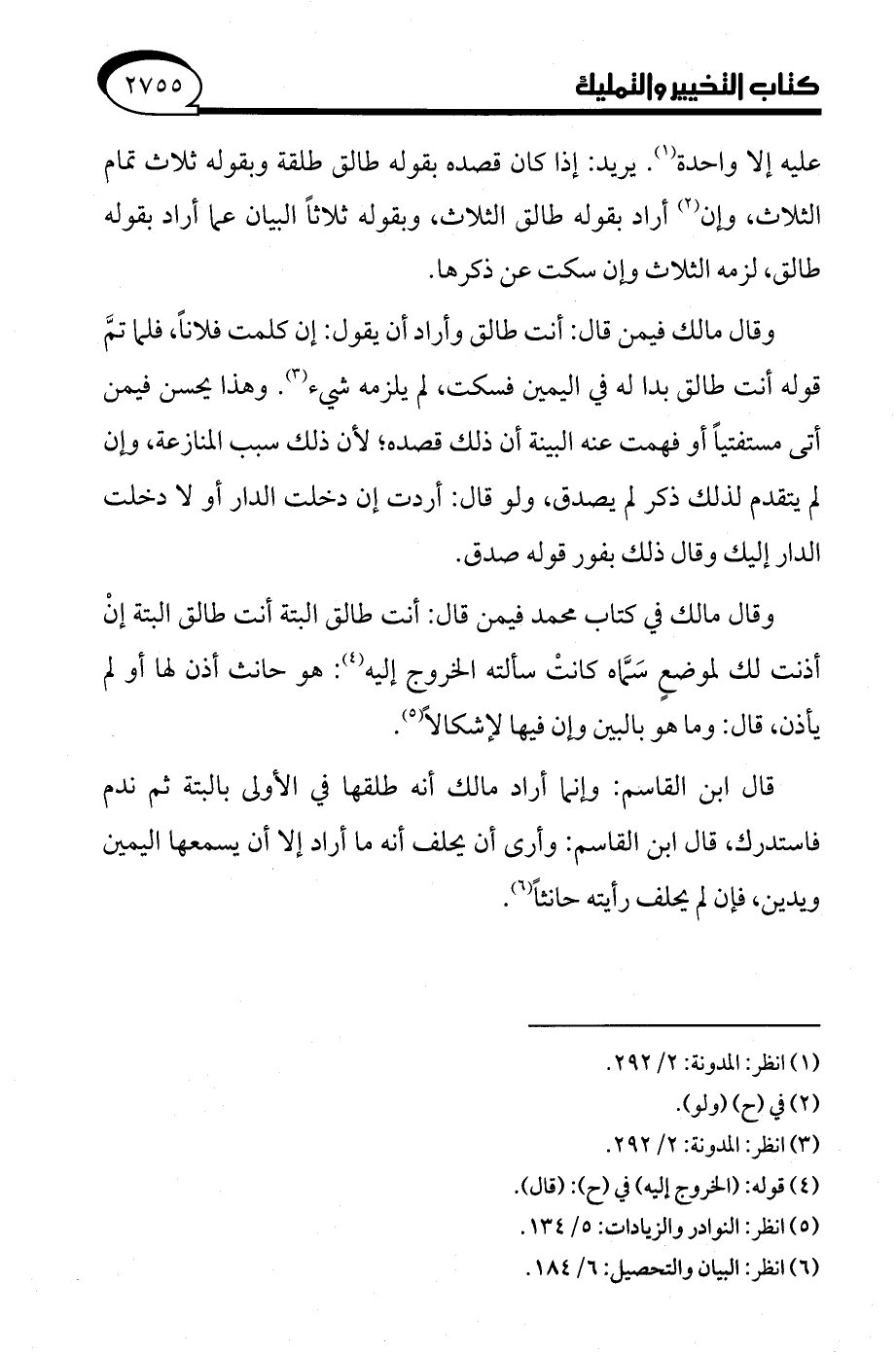 (¬5) انظر: النوادر والزيادات: 5/ 134.