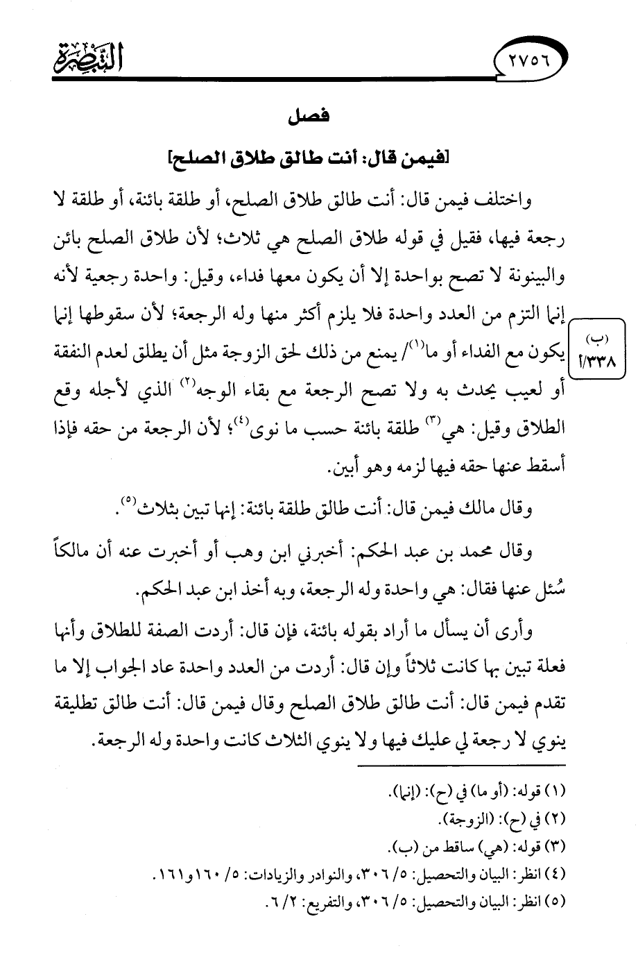 (¬5) انظر: البيان والتحصيل: 5/ 306، والتفريع: 2/ 6.