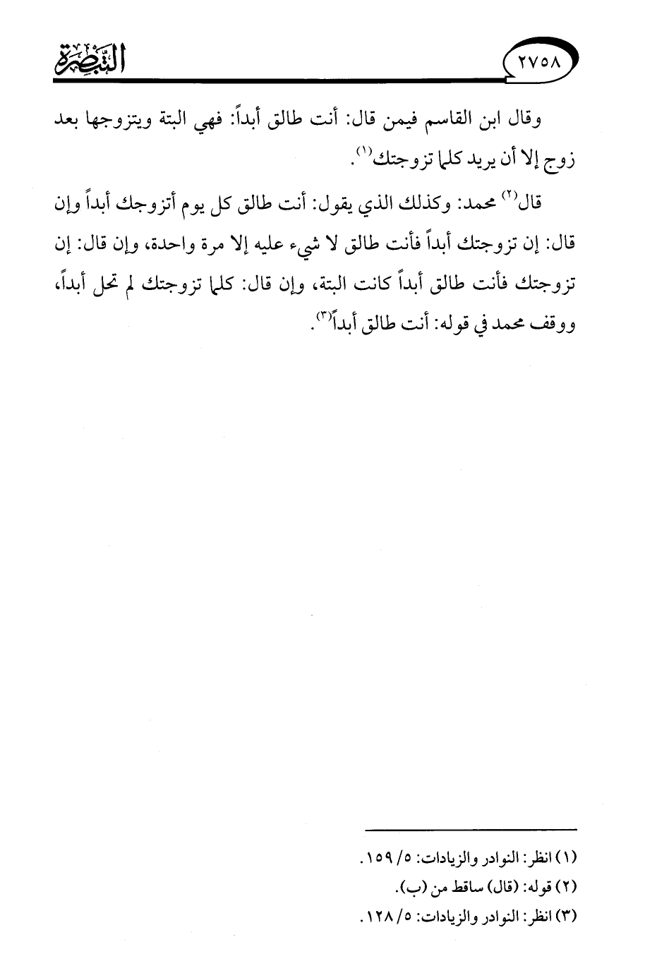 (¬3) انظر: النوادر والزيادات: 5/ 128.