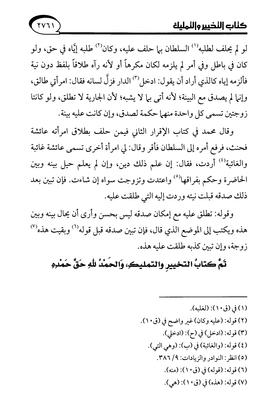تَمَّ كتابُ التخييرِ والتمليكِ، وَالحَمْدُ للهِ حَقَّ حَمْدِهِ