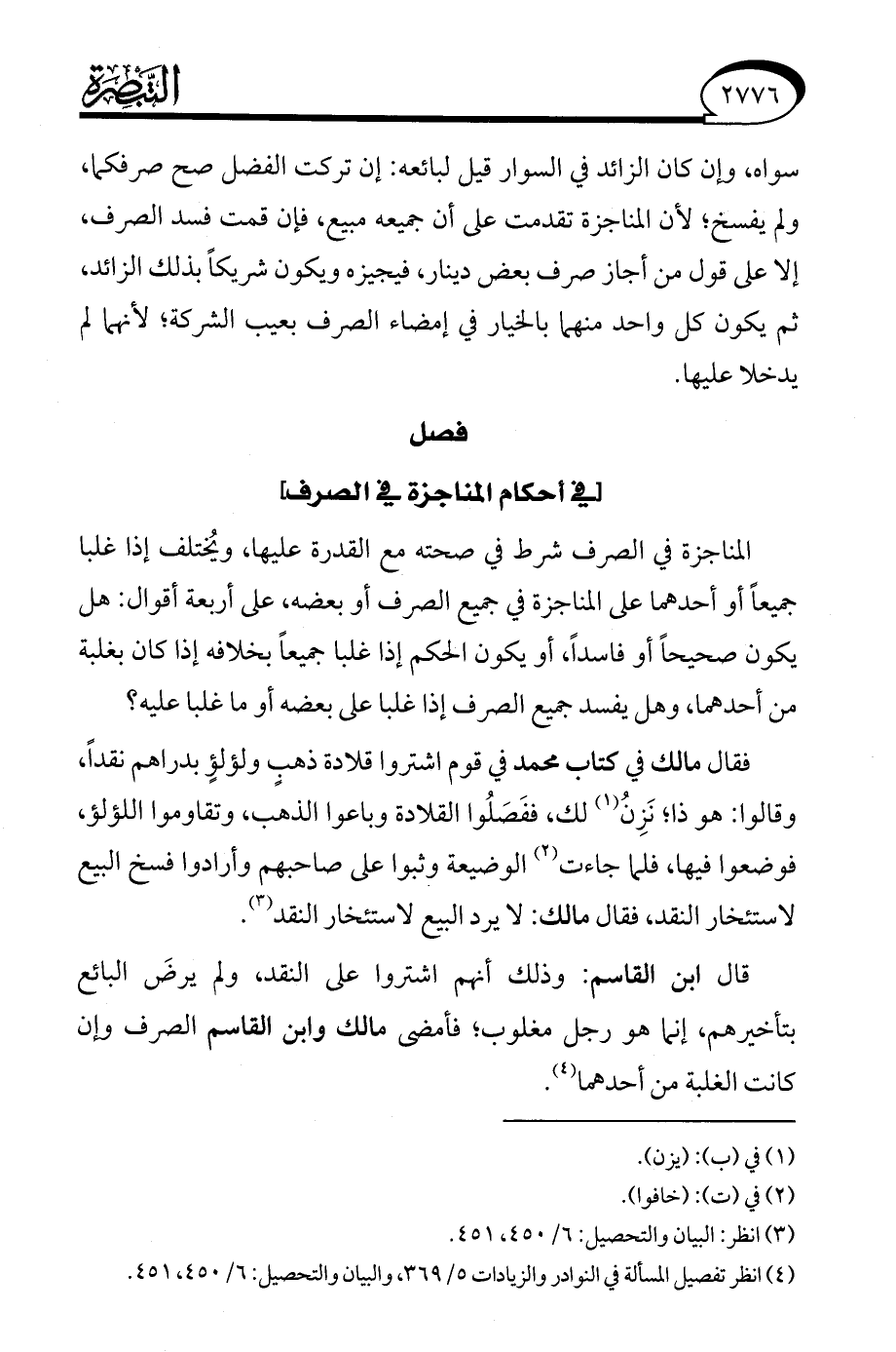 (¬4) انظر تفصيل المسألة في النوادر والزيادات 5/ 369، والبيان والتحصيل: 6/ 450، 451.