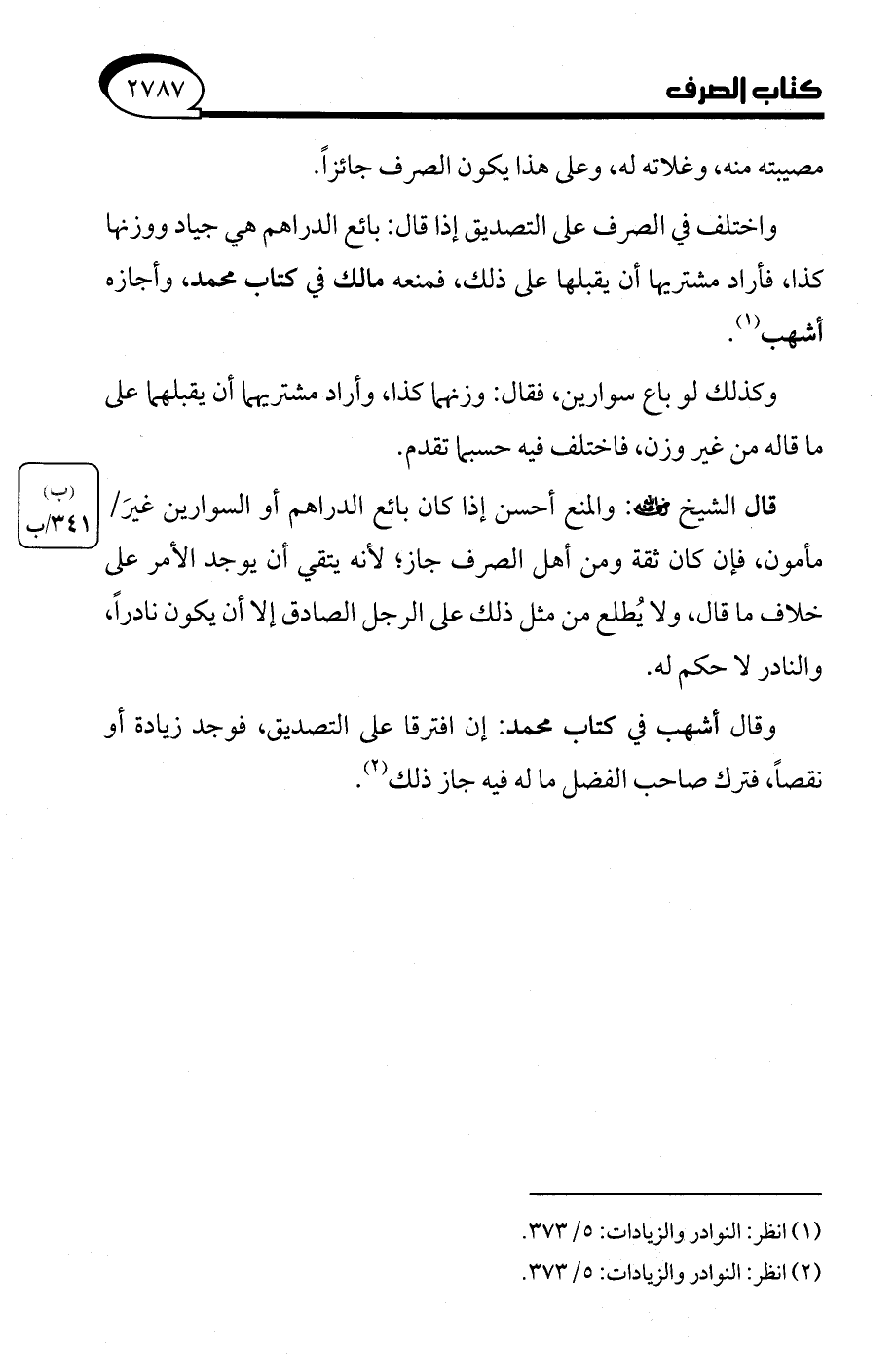 (¬2) انظر: النوادر والزيادات: 5/ 373.