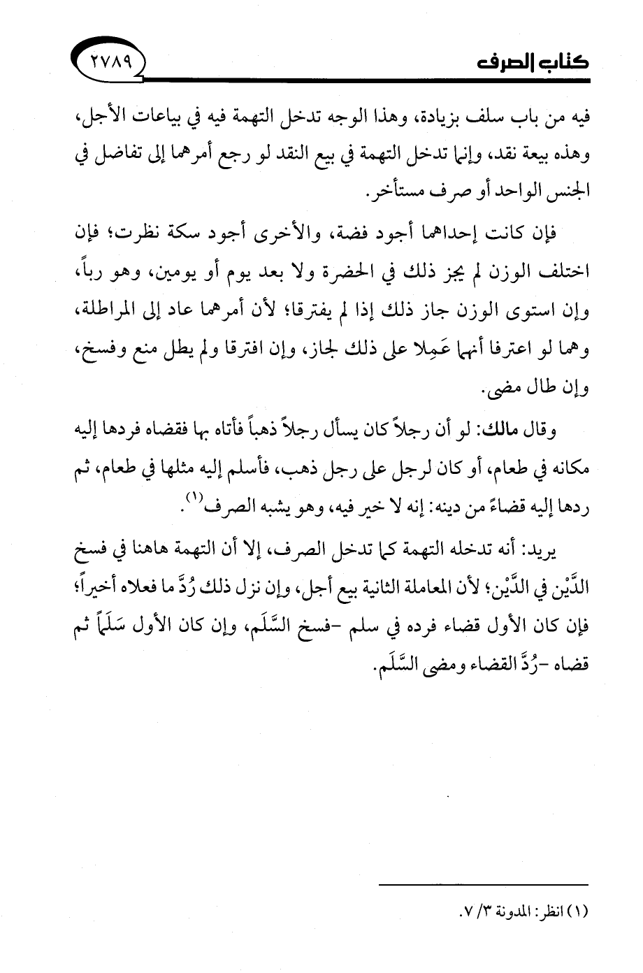 يريد: أنه تدخله التهمة كما تدخل الصرف، إلا أن التهمة ها هنا في فسخ الدَّيْن في الدَّيْن؛ لأن المعاملة الثانية بيع أجل، وإن نزل ذلك رُدَّ ما فعلاه أخيرًا، فإن كان الأول قضاء فرده في سلم- فسخ السَّلَم، وإن كان الأول سَلَمًا ثم قضاه- رُدَّ القضاء ومضى السَّلَم.