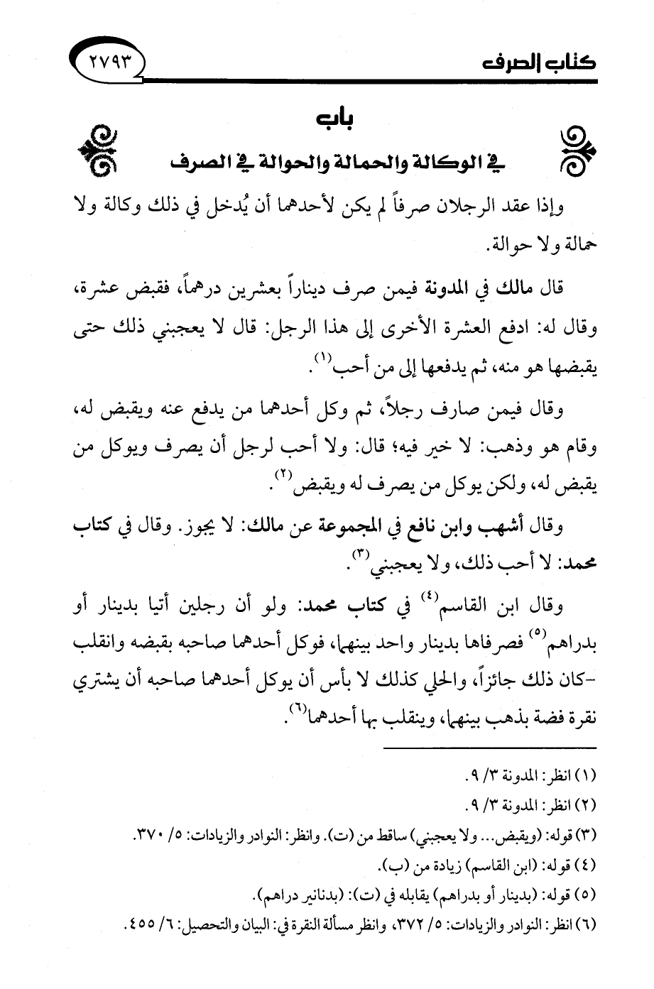 (¬6) انظر: النوادر والزيادات: 5/ 372، وانظر مسألة النقرة في: البيان والتحصيل: 6/ 455.