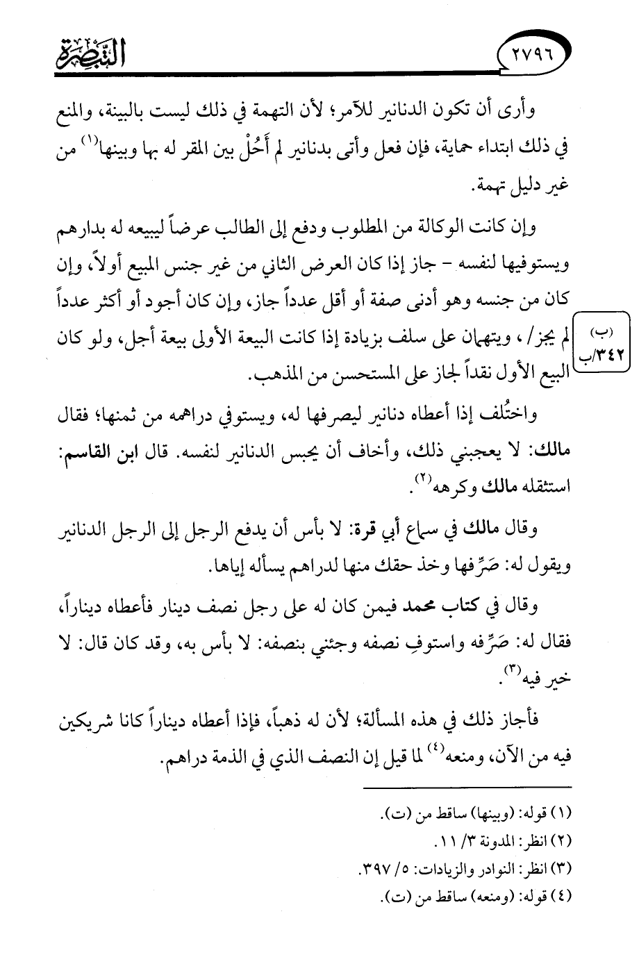 (¬3) انظر: النوادر والزيادات: 5/ 397.