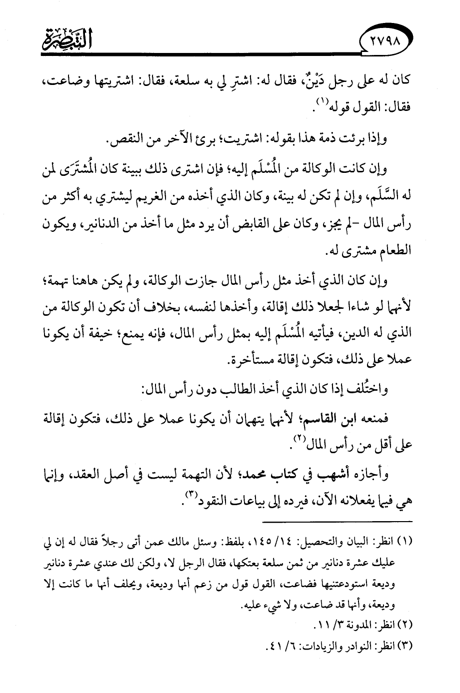 (¬3) انظر: النوادر والزيادات: 6/ 41.